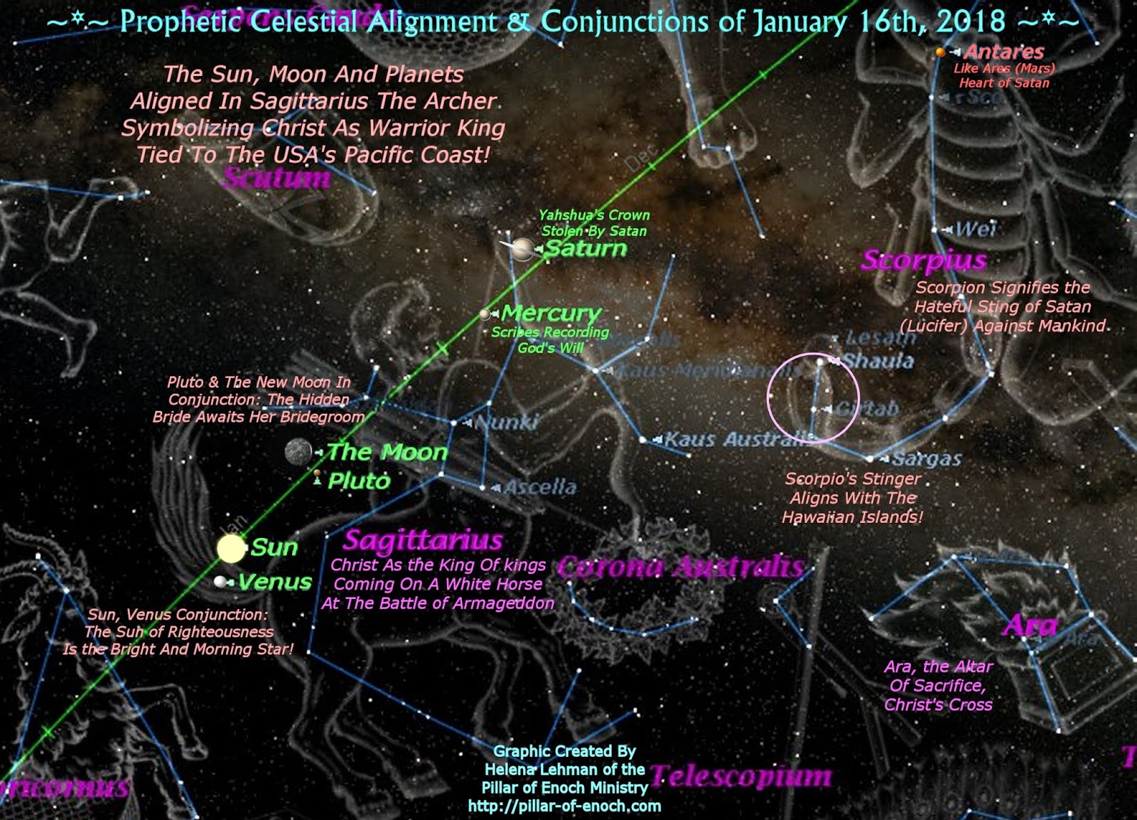 | Celestial Alignments in Sagittarius the Archer on January 16th, 2018 (RIGHT CLICK IMAGE AND OPEN IN NEW TAB TO SEE ENLARGED VIEW) |